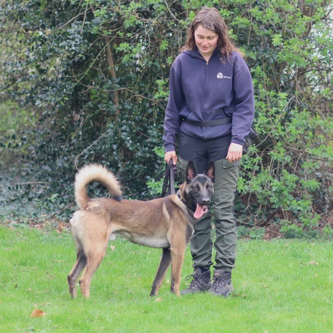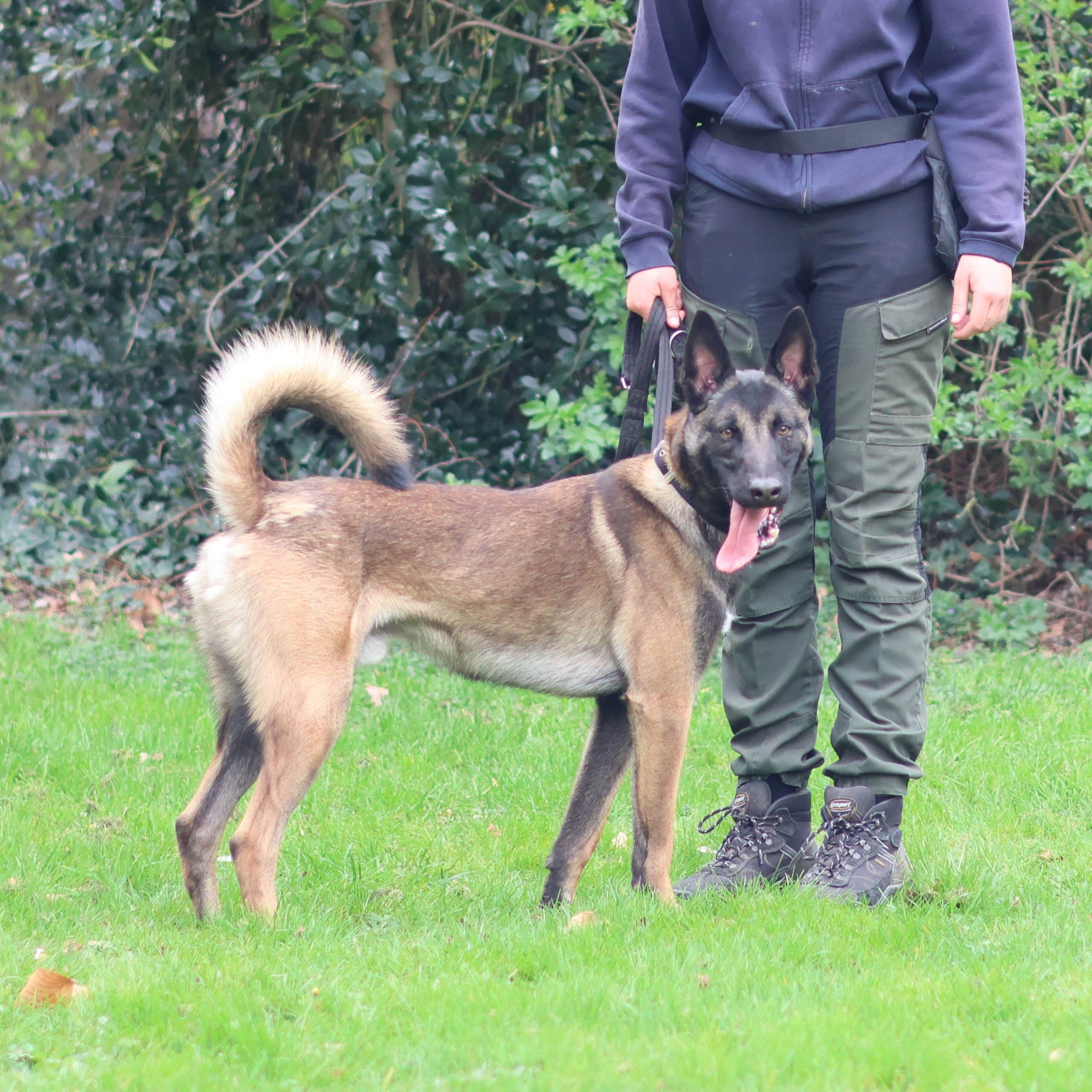 Aslan, een Mechelse herder reu, geboren in februari 2024. In de fleur van z’n leven! Hij kwam bij ons terecht als vondeling maar bleek snel al een ‘doorgeefhond’ te zijn. We hopen stabiliteit te kunnen brengen in deze jongen z’n leven.