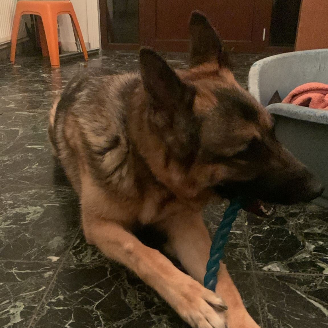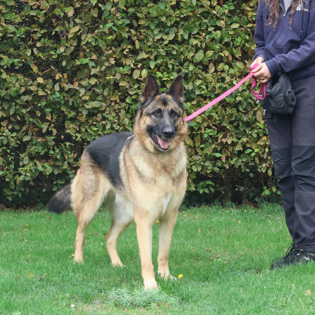 Omwille van zijn medische aandachtspunt, plaatsen we hem niet bij te kleine kinderen. Kinderen vanaf 12 jaar, gewend aan grote honden, kunnen mee kennismaken.