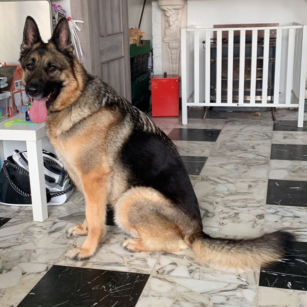 Deze lieve kerel is Barry. Barry is een grote (!) Duitse herder reu (40 kg), geboren in november 2019. Hij kwam bij ons terecht na afstand omdat z’n baasje niet meer voor hem kon zorgen.