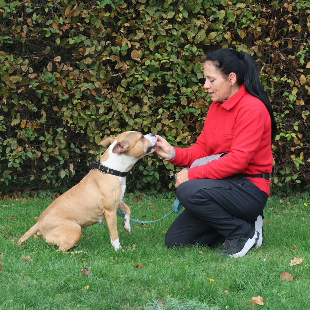 Cara heeft een zachte inborst naar mensen toe. Ze legt goed contact maar in het asiel zelf is ze nogal snel overprikkeld. We vermoeden dat het zeker een hond is die niet erg hoog in energie staat wanneer ze in een rustige omgeving vertoeft. Ze doet haar behoefte mooi op wandeling en lijkt ons daarom toch ook zindelijk. Ook legt ze zich flink neer in haar mandje en heeft ze het nodige respect voor dit materiaal.