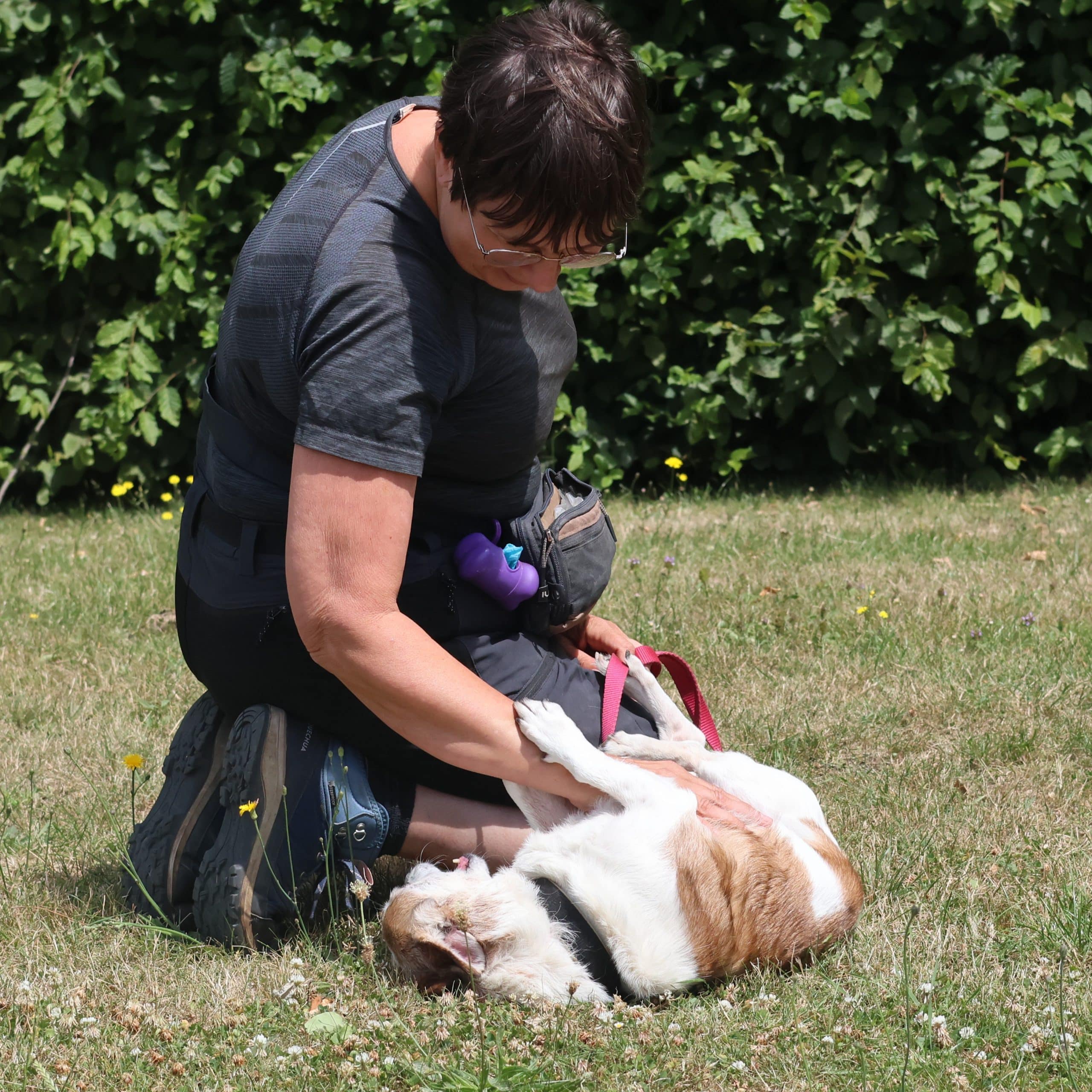 Dolly kan geplaatst worden als hond alleen. Andere dieren vindt ze niet zo aangenaam om mee samen te leven. Op wandeling negeert ze hen wel prima. Ze wandelt goed en erg graag! Dit heeft ze zeker ook nodig! Daarna kan ze goed tot rust komen in een mandje en kent ze ook de bench. Of ze steriel is is niet gekend.Â
