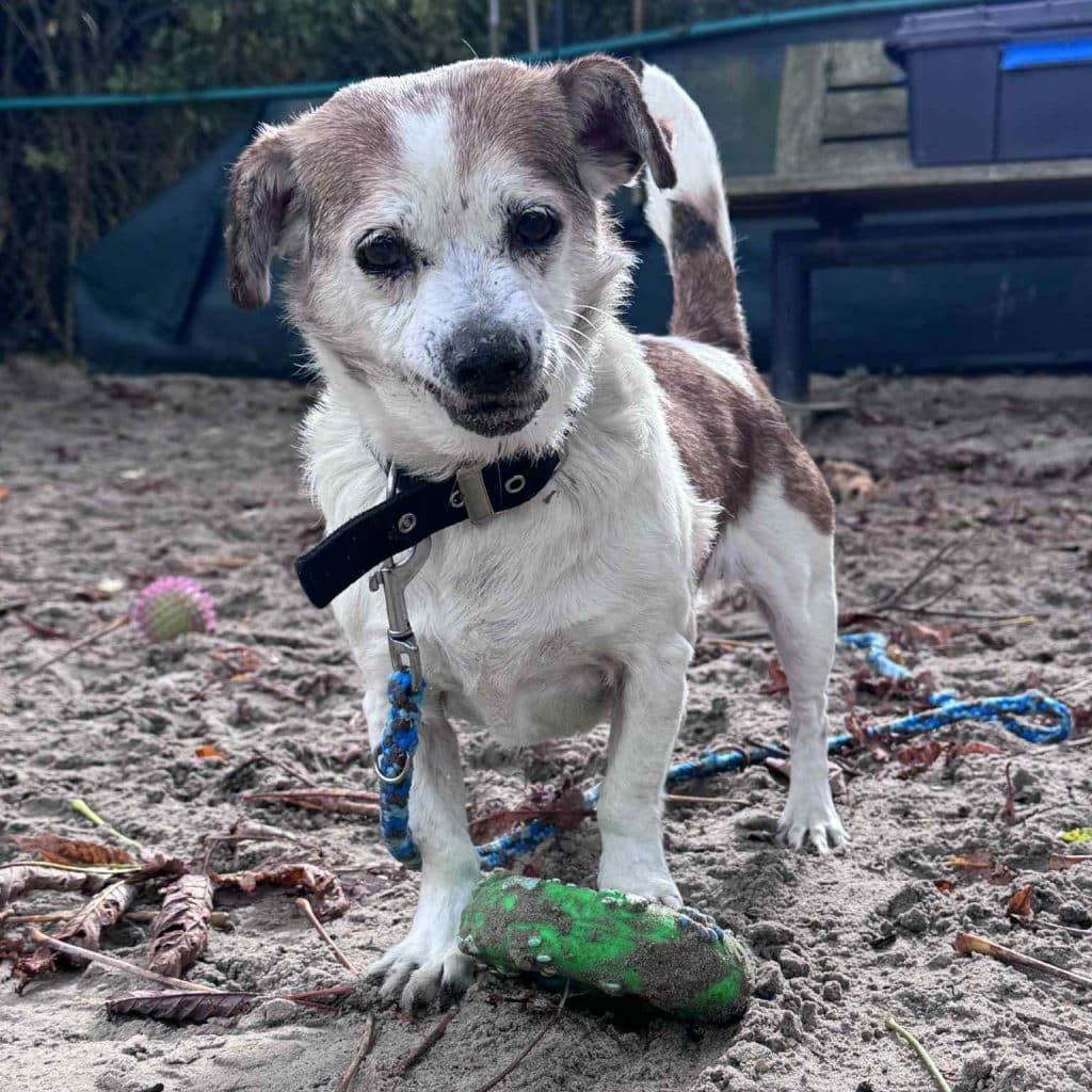 Dolly is een vrolijke, zelfstandige senior dame. Ze is nog erg levendig en speels! Ook komt ze graag bij je, is ze aanhankelijk en lief! Ze houdt van wandelingetjes en om fijn te spelen met speeltjes. Samen met haar wandelen is een aangename bezigheid! Ze is vriendelijk en houdt ook wel van kriebels! Ze doet het prima in huis. Ze is zindelijk en bijt niets stuk. Ze heeft ook graag speeltjes ter beschikking en doet niets liever dan apporteren!