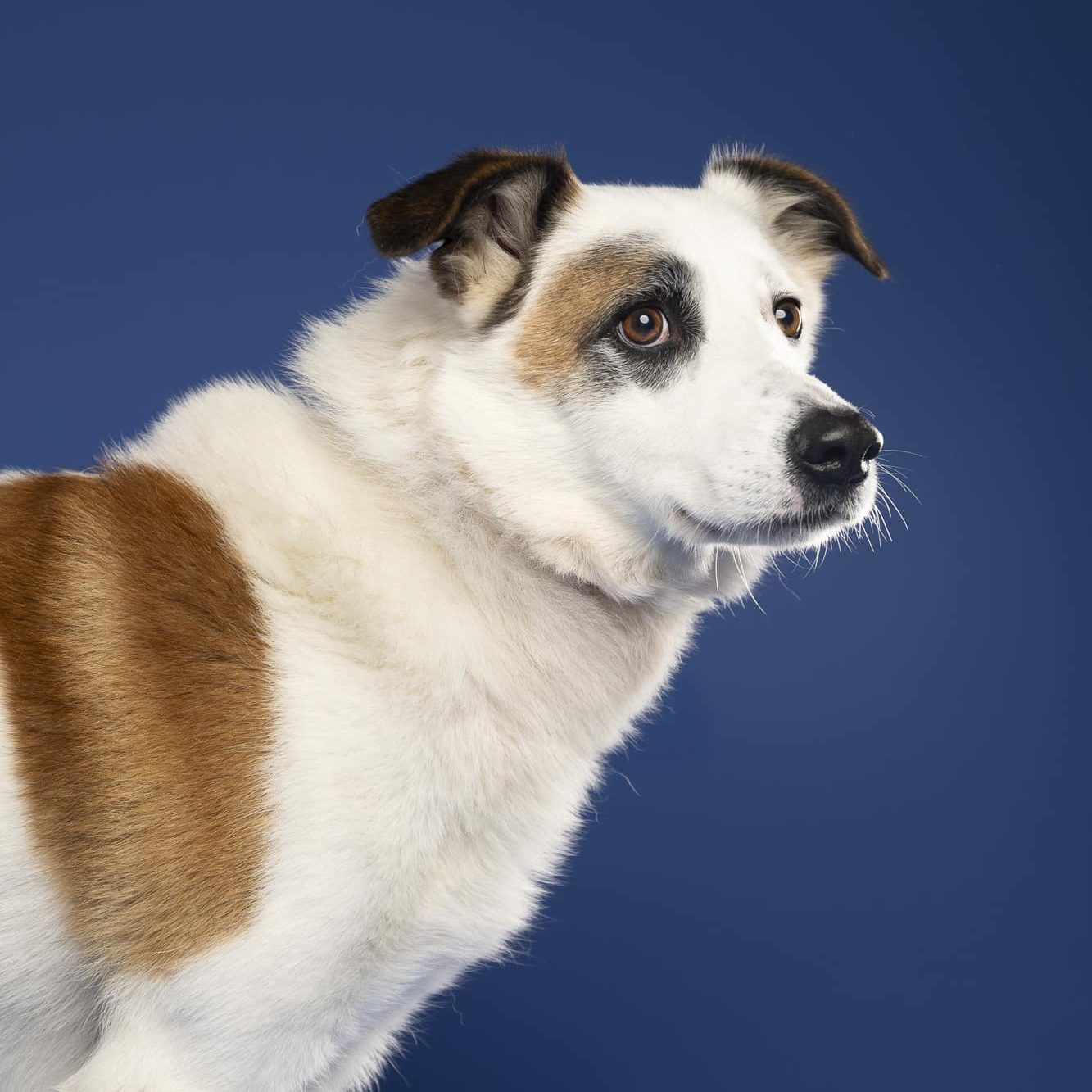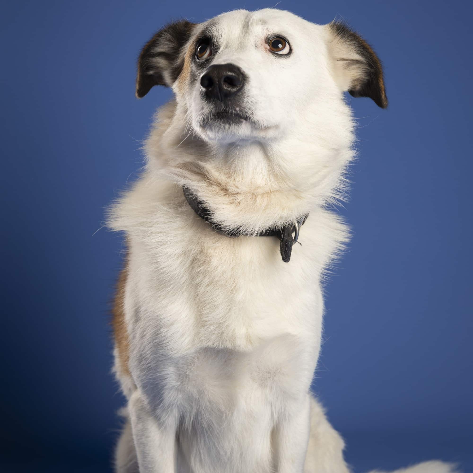 Deze unieke verschijning is Mancho. Mancho is een kruising reu, geboren in augustus 2018 (schatting). Hij kwam, samen met zijn maatje bij ons terecht omdat zijn baasje niet meer voor hen kon zorgen.