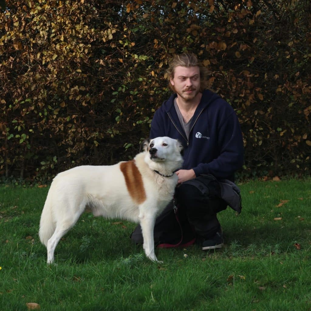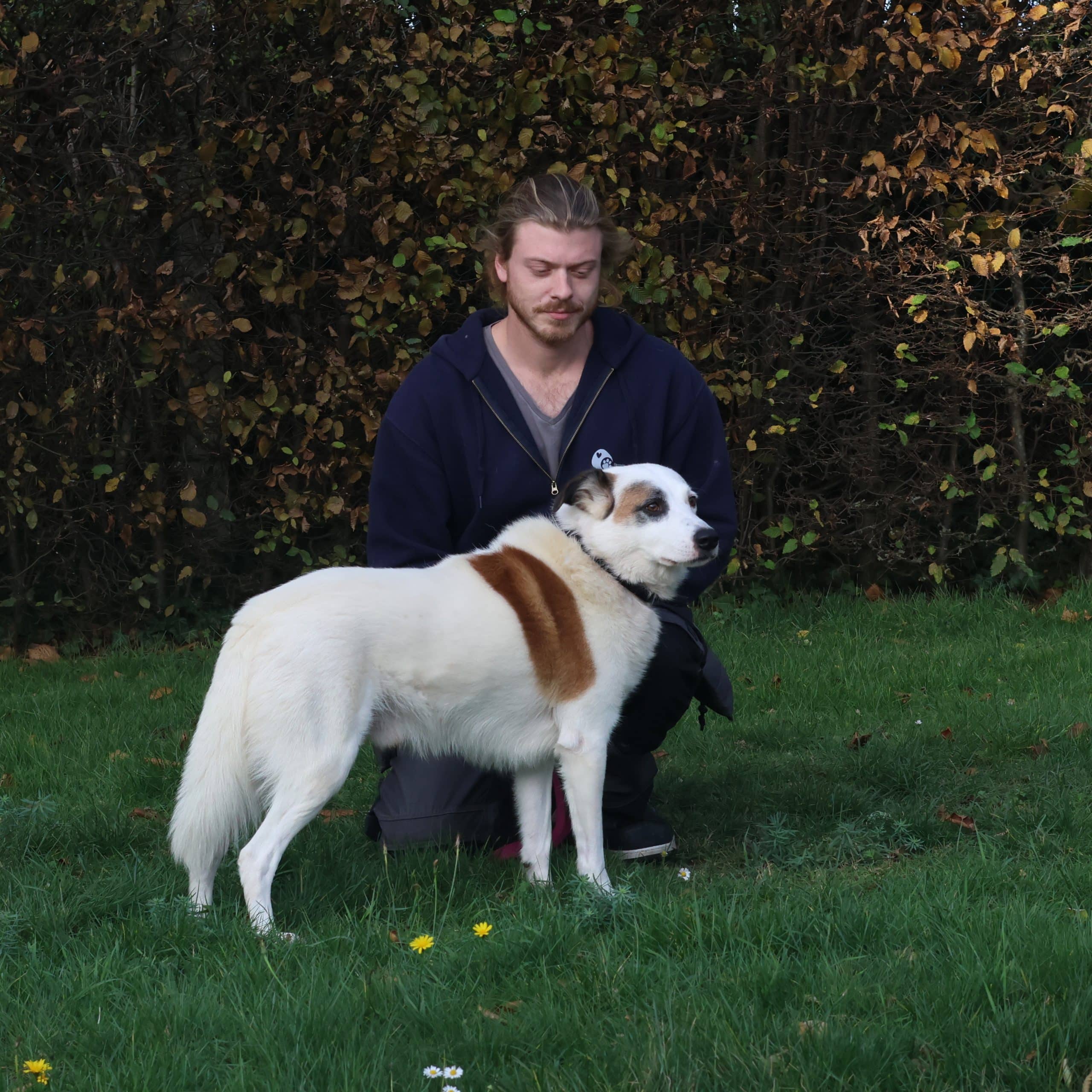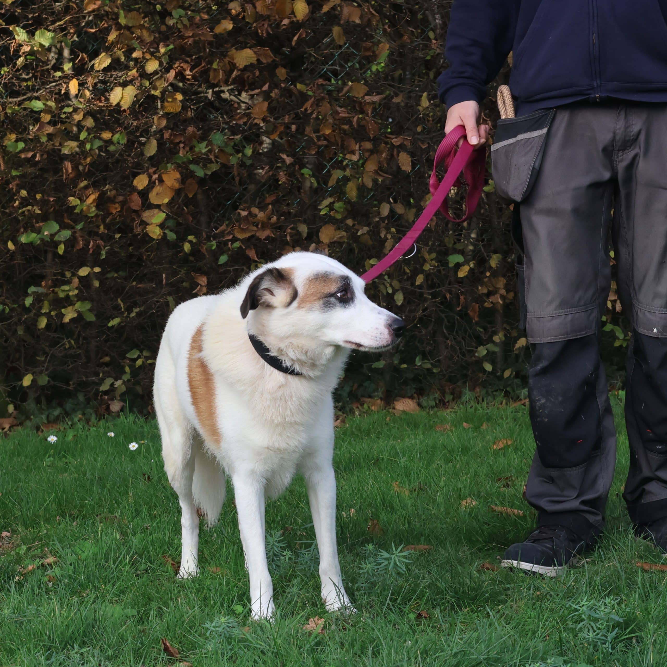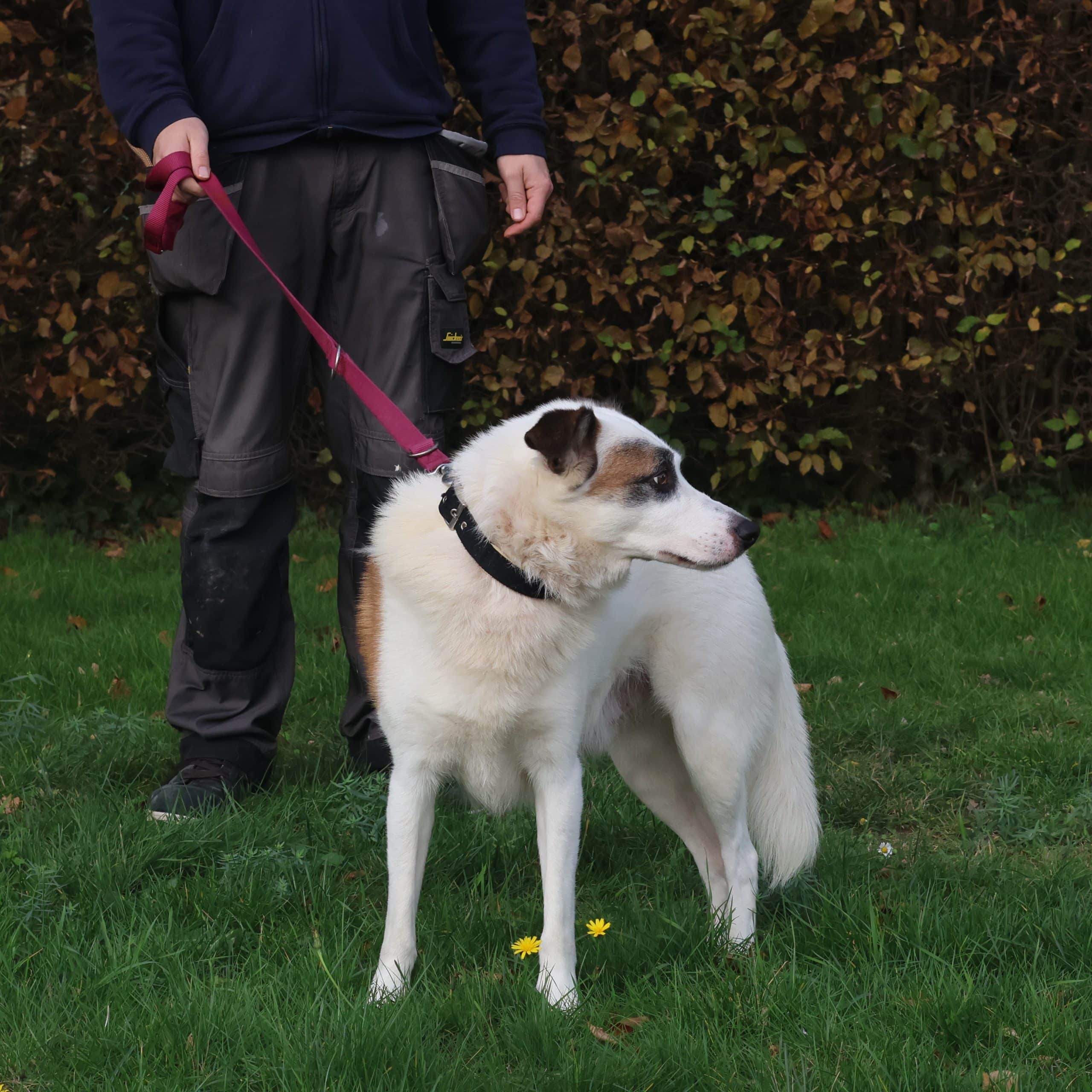 Hij is een onzekere hond. Hij heeft tijd nodig om nieuwe mensen te leren kennen. Zo is dat momenteel ook nog bij ons. Hij is geen angstbijter, maar hij vertoont nog verschillende stresssignalen waardoor we het ook gewoon rustig aan doen met hem.Â