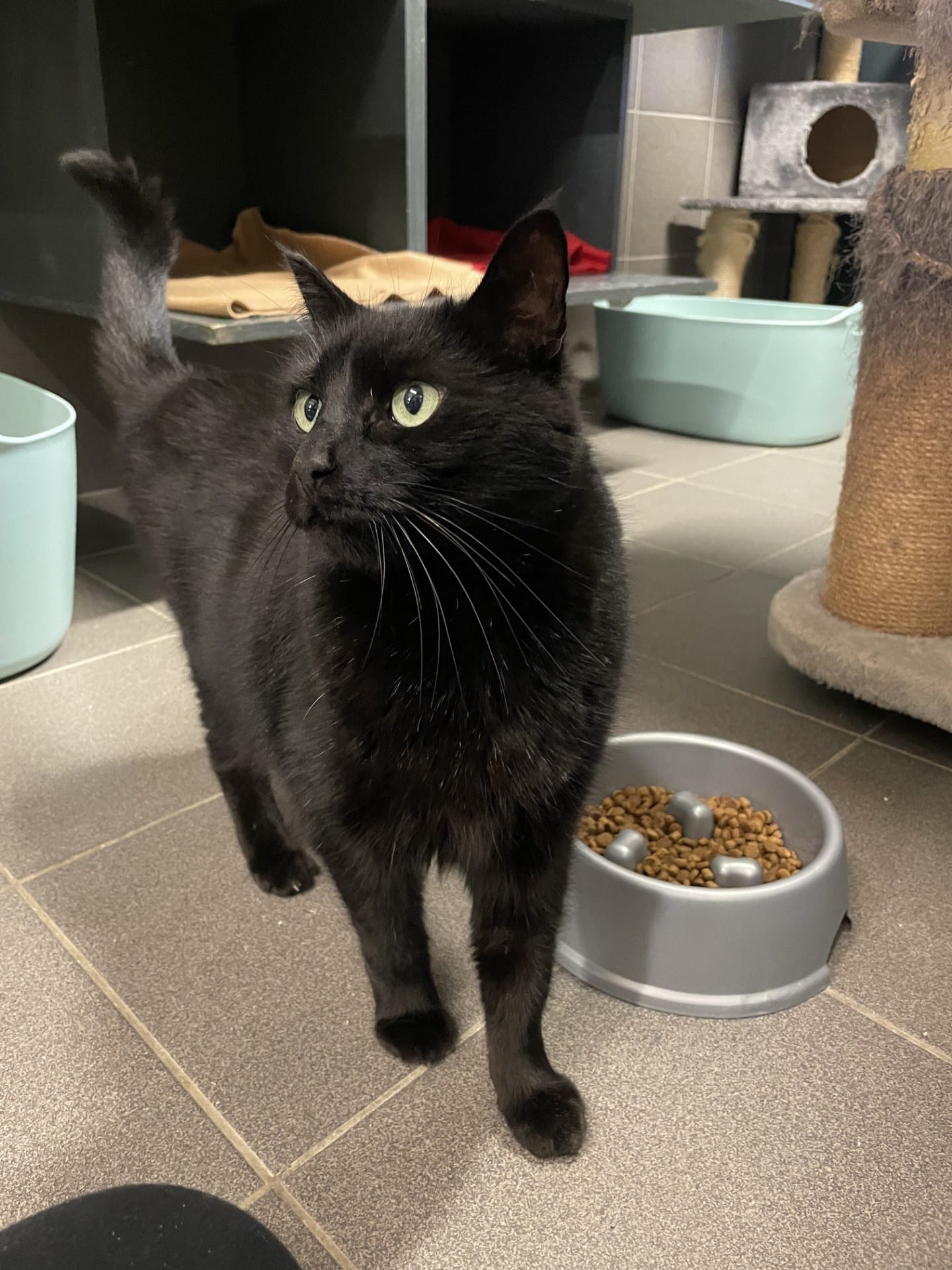 Matty werd tijdelijk opgevangen samen met een andere kat, Elly, door een persoon die hen helaas niet langdurig kon blijven verzorgen. Daarom moesten ze naar het asiel worden gebracht. Nu zijn ze vrij voor adoptie en zoeken ze een nieuw thuis waar ze de liefde en aandacht kunnen krijgen die ze verdienen.