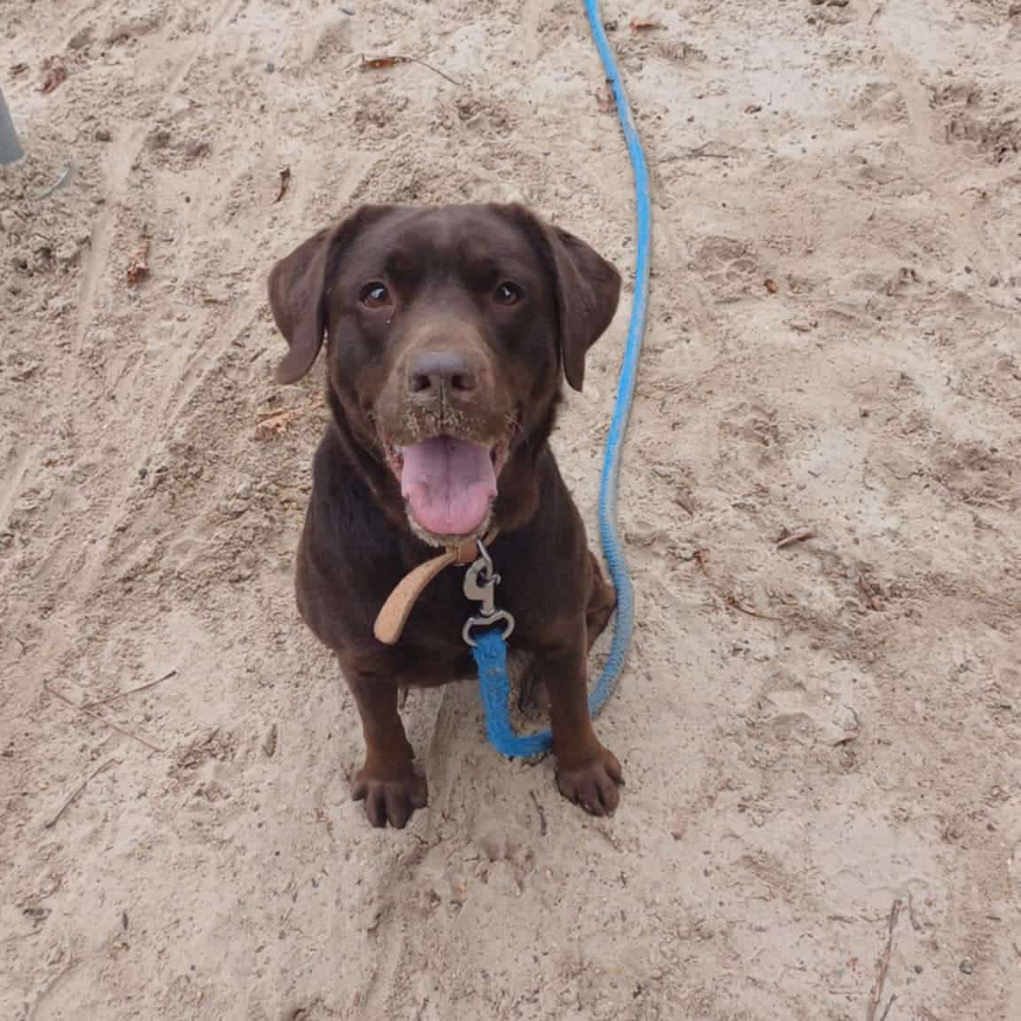 Maya is een echte ‘choco’ labrador. Ze heeft veel energie, is wat nerveuzer van aard en houdt van aandacht! Ze kent nog niet veel. Wandelen aan de leiband gaat goed, maar ze trekt wel stevig aan de leiband. Ze heeft veel activiteit nodig om tot rust te kunnen komen. Het leven in huis is haar nog onbekend. Daarom is het wel fijn dat er met haar rustig aan van buiten naar binnen gewerkt kan worden, of waar men toch wel de mogelijkheid heeft dit stap voor stap met haar op te bouwen. Het is een schat van een hond en staat open voor nieuwe dingen.