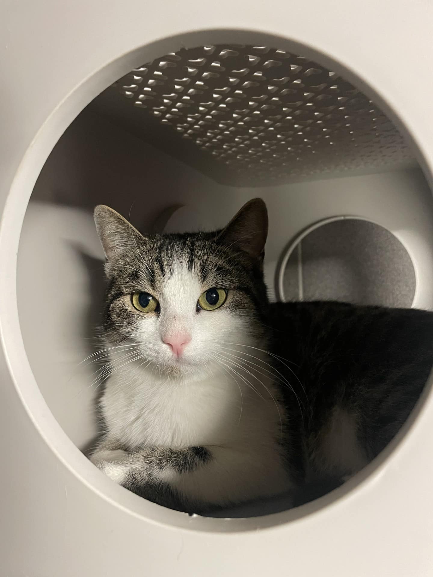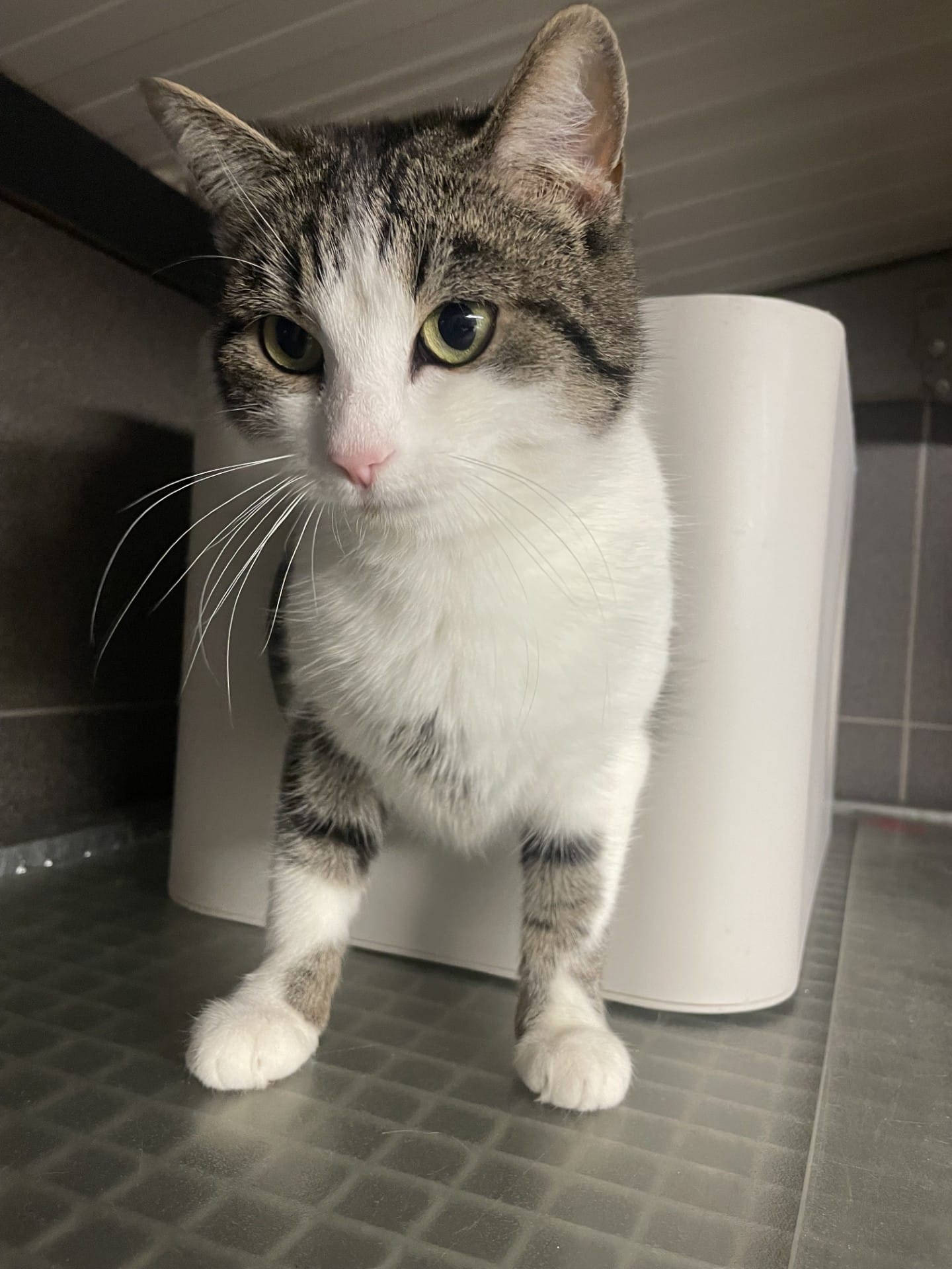 Nyla is geen kat voor beginners. Ze is een zelfverzekerde, energieke kat met een zeer directe manier van communiceren. Hoewel ze in de warmte van een thuis heeft geleefd, is ze niet volledig gesocialiseerd en heeft ze er geen moeite mee om met een beetje nagels en tanden duidelijk te maken wat ze niet prettig vindt.