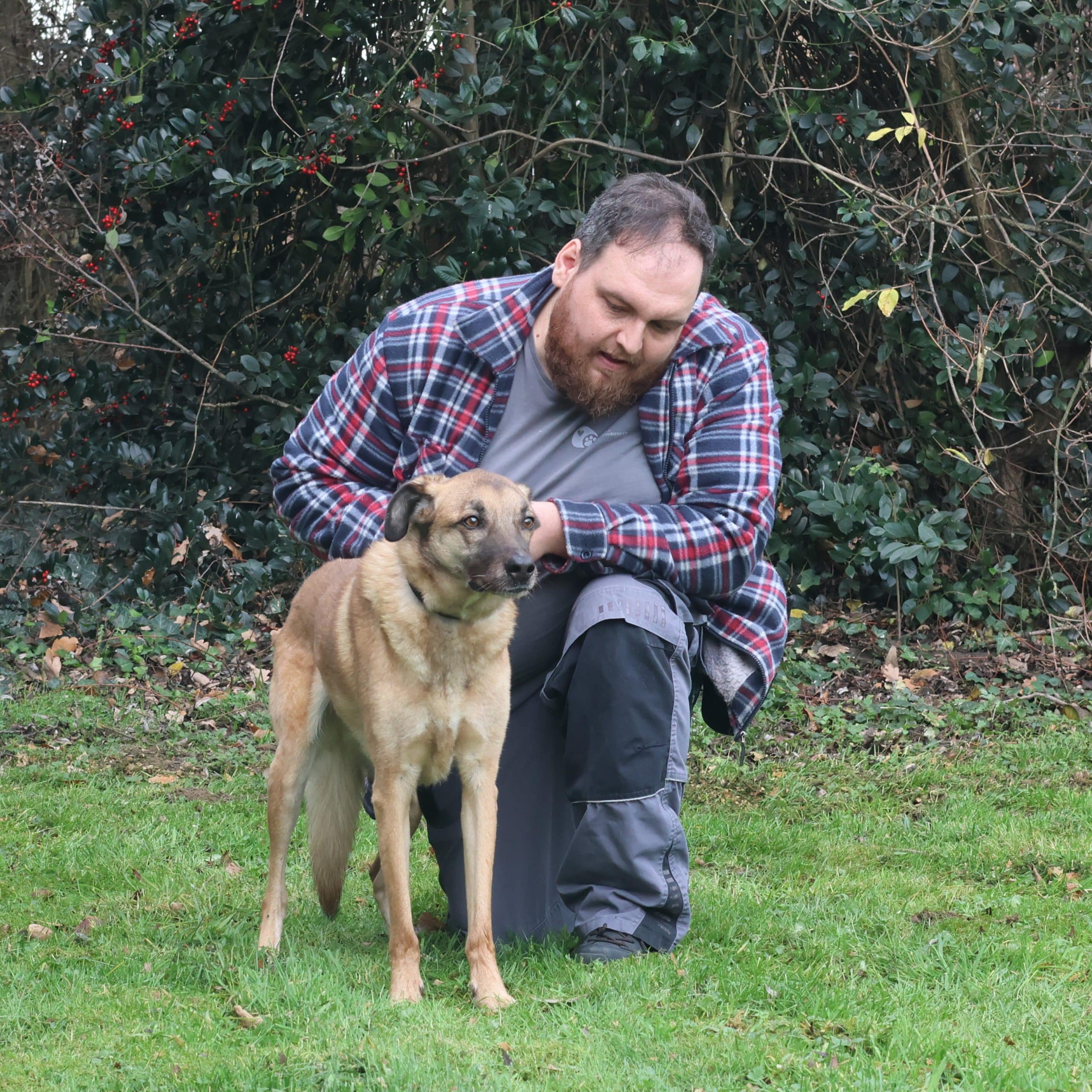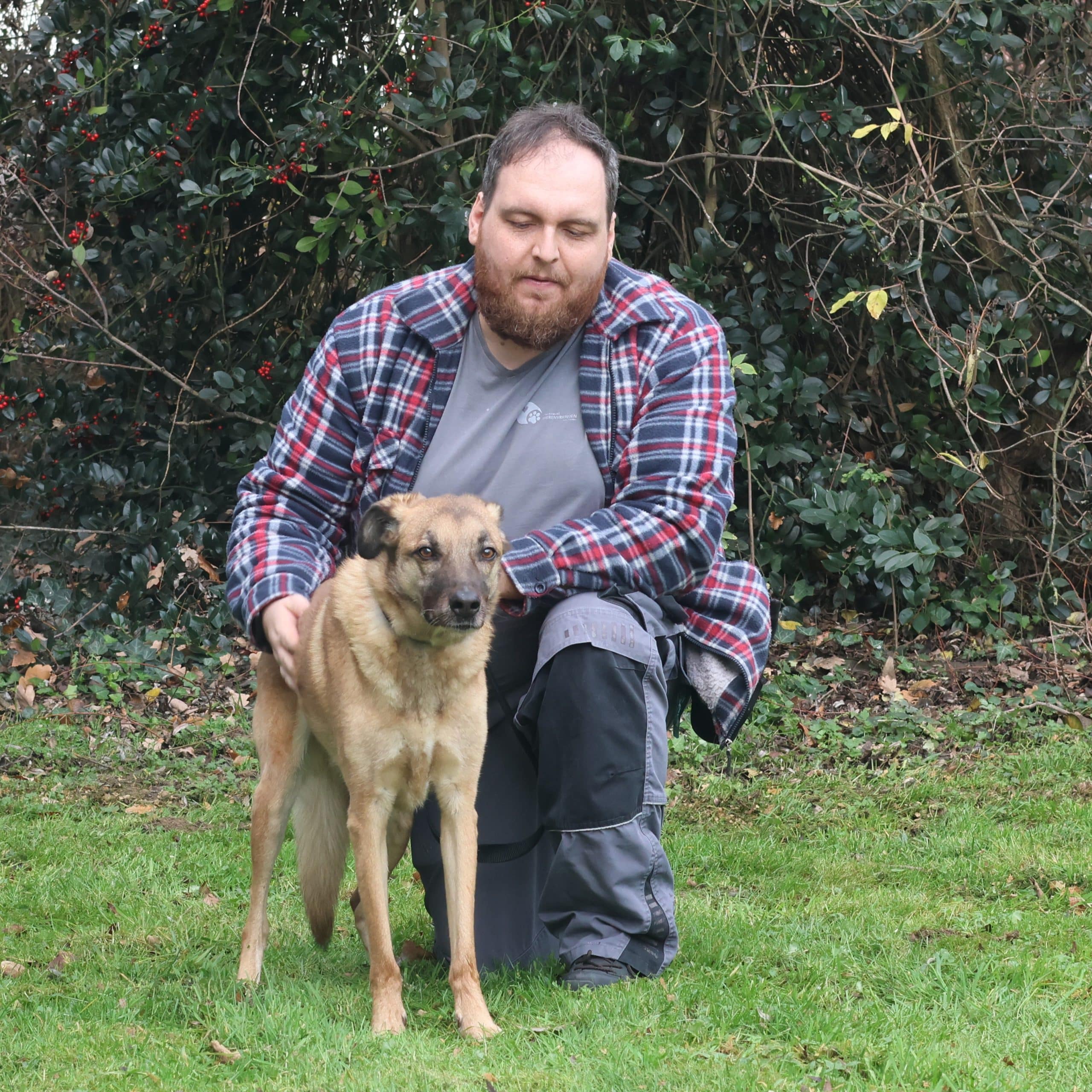 Sammeke, ons lieve ventje. In het begin enorm bang, terughoudend, onzeker… Nu is hij blij wanneer hij onze mensen ziet, ermee mag wandelen, samen kunnen knuffelen… Nieuwe mensen is hij wel altijd terug wat terughoudender naar, maar hij is wel lief en zacht van inborst. Je moet hem gewoon eventjes tijd geven om contact te leggen. Het gezelschap van een rustige, andere hond helpt hem hier enorm mee. Reu of teef, wanneer ze rustig in omgang zijn is het voor hem prima. Hij is zindelijk en lijkt wel rustig in huis. Wandelen doet hij flink, rustig en respectvol. Het is eerder een rustige hond.