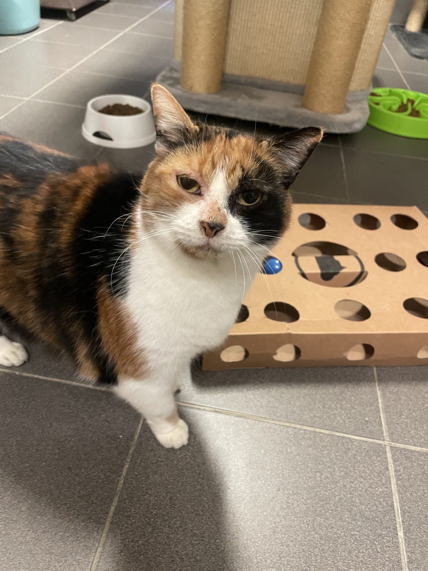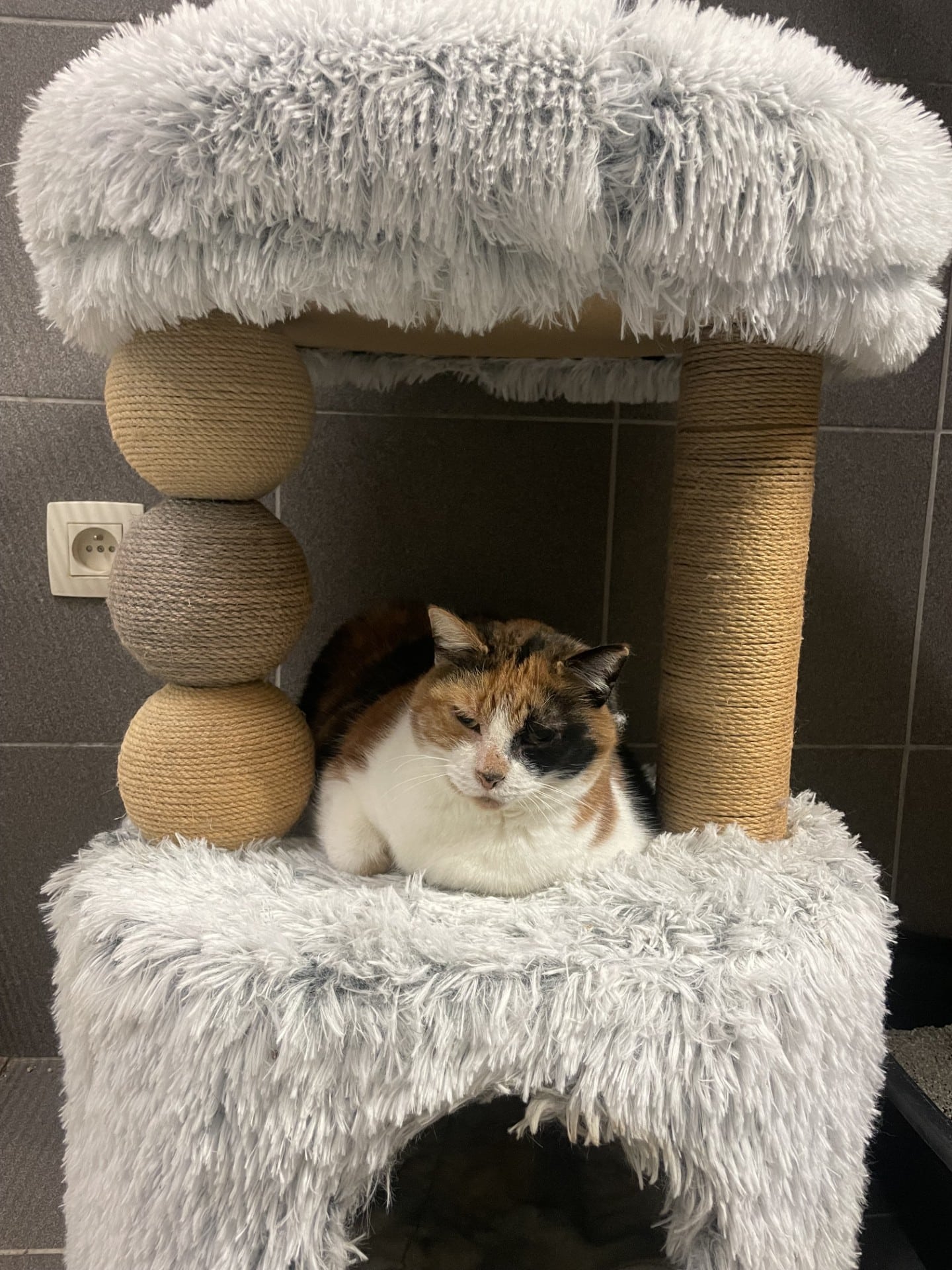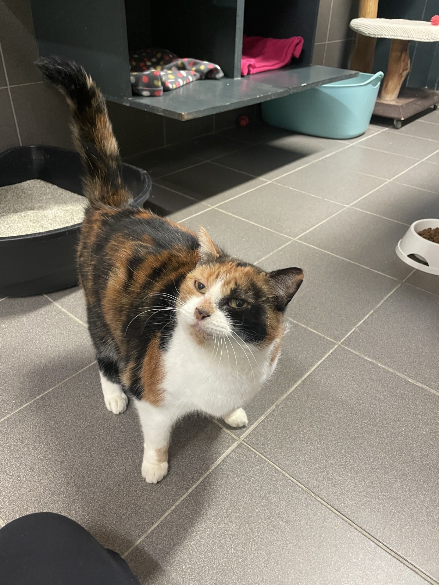 Trees zal het gelukkigst zijn in een thuis zonder andere katten. We denken niet dat ze kan samenleven met een jonge, energieke hond, maar met een correcte introductie zou ze mogelijk de aanwezigheid van een oudere, rustige hond kunnen tolereren. Trees kan samenleven met kinderen ouder dan 10 jaar die weten hoe ze met katten moeten omgaan en haar grenzen en rustmomenten respecteren. Hoewel ze nog actief is, geeft ze op haar leeftijd de voorkeur aan contact in de vorm van aaien boven spel. Trees moet veilig toegang krijgen tot de buitenlucht.
