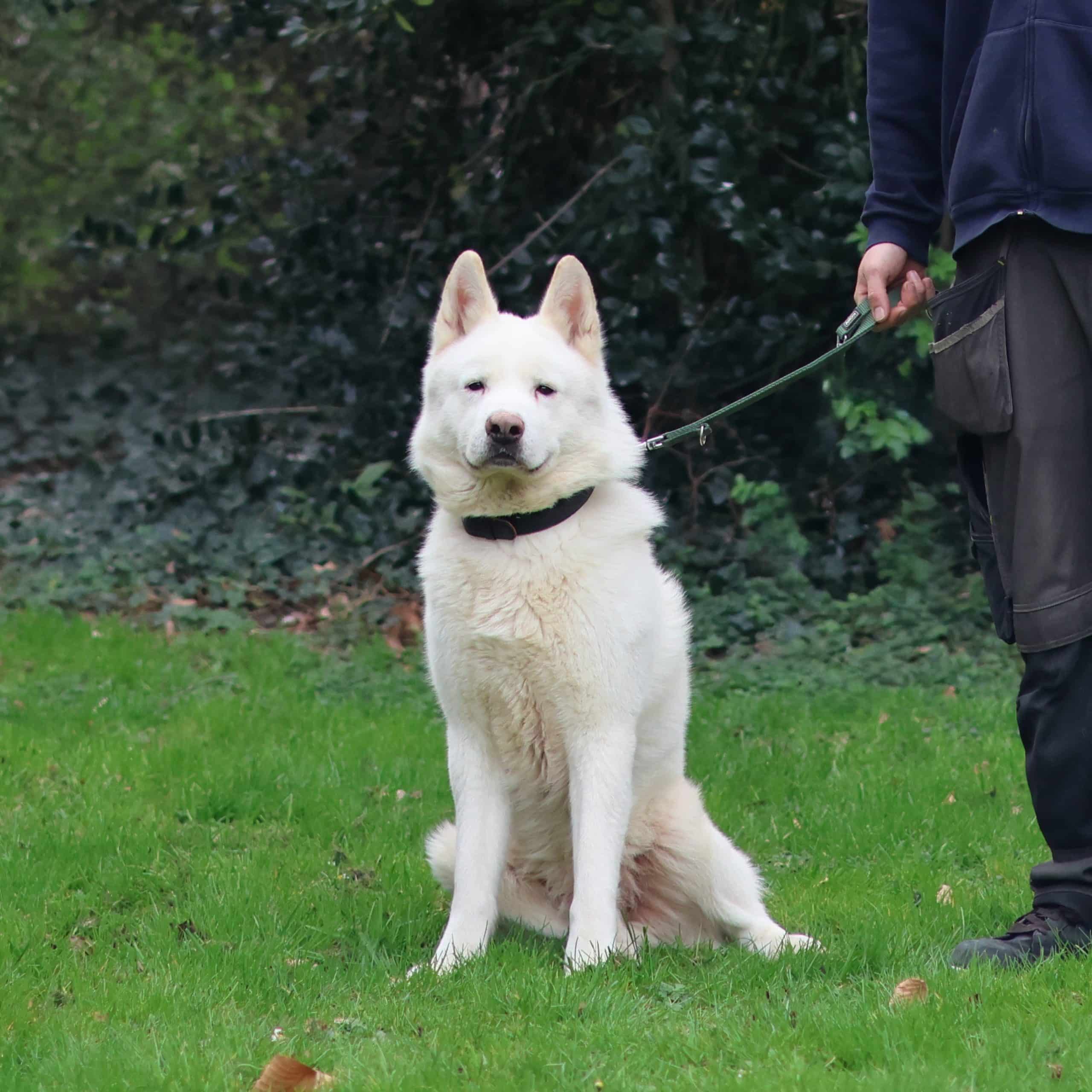 Yuki is in het algemeen een lieve, vrolijke hond. Naar mannen toe is hij meer timide. Hij durft een lichte grom laten horen, maar vindt het oké wanneer hij ruimte krijgt. Na een rustige kennismaking bloeit hij wel open. Naar vrouwen toe is hij één en al blijheid. Hij houdt van knuffelen, spelen met z’n mensen (niet zo zeer met speelgoed) en van wandelingen. Hij wandelt goed aan de lijn, maar zal zeker wat voorop lopen. Hij kent het leven in huis en woonde altijd mee binnen. Deze thuis deelde hij ook met een kat en kinderen. Hij is zindelijk en houdt duidelijk van gezelschap.