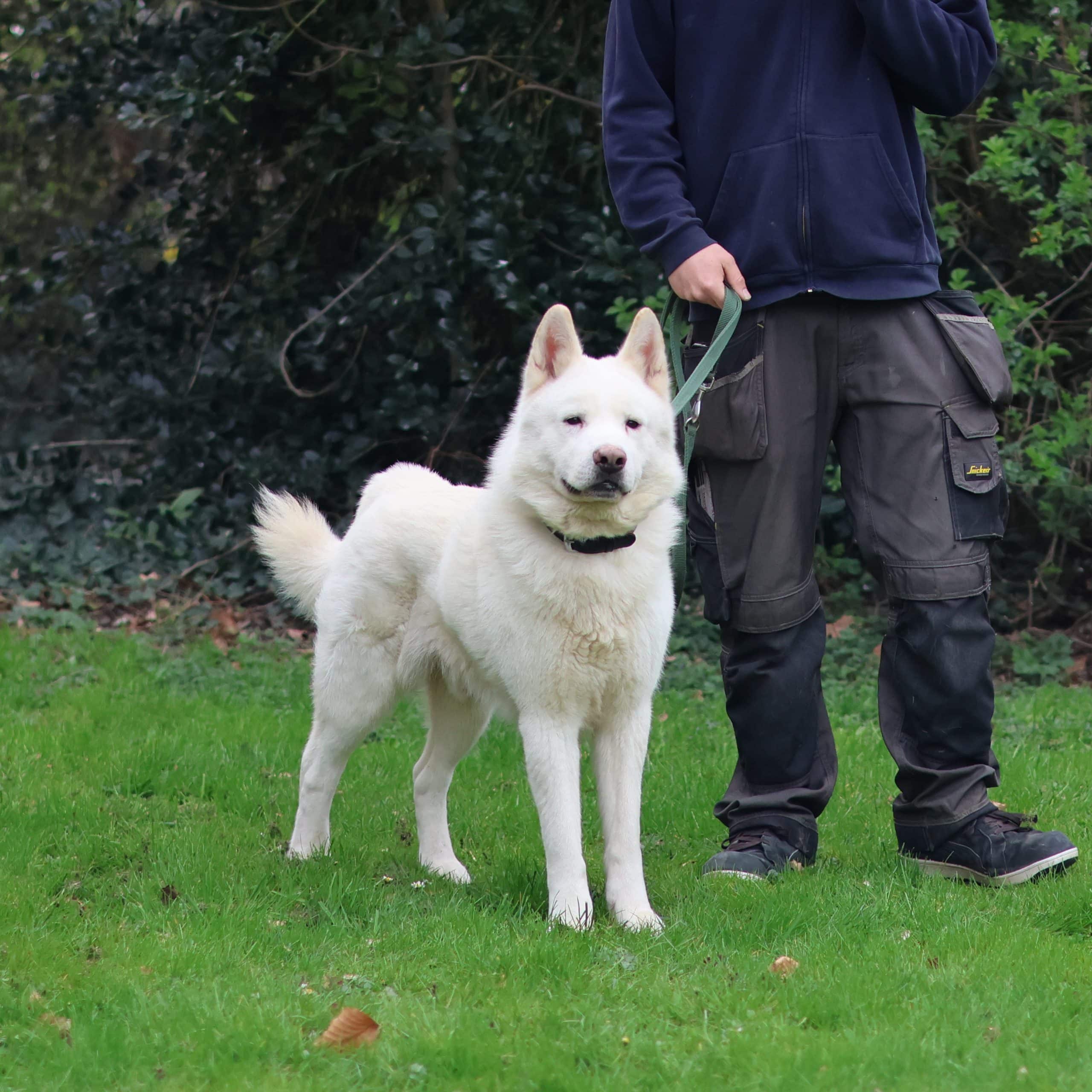 Deze prachtige man is Yuki. Yuki is een Amerikaanse Akita (volgens zijn paspoort), geboren in februari 2020. Hij kwam bij ons terecht na afstand wegens scheiding.