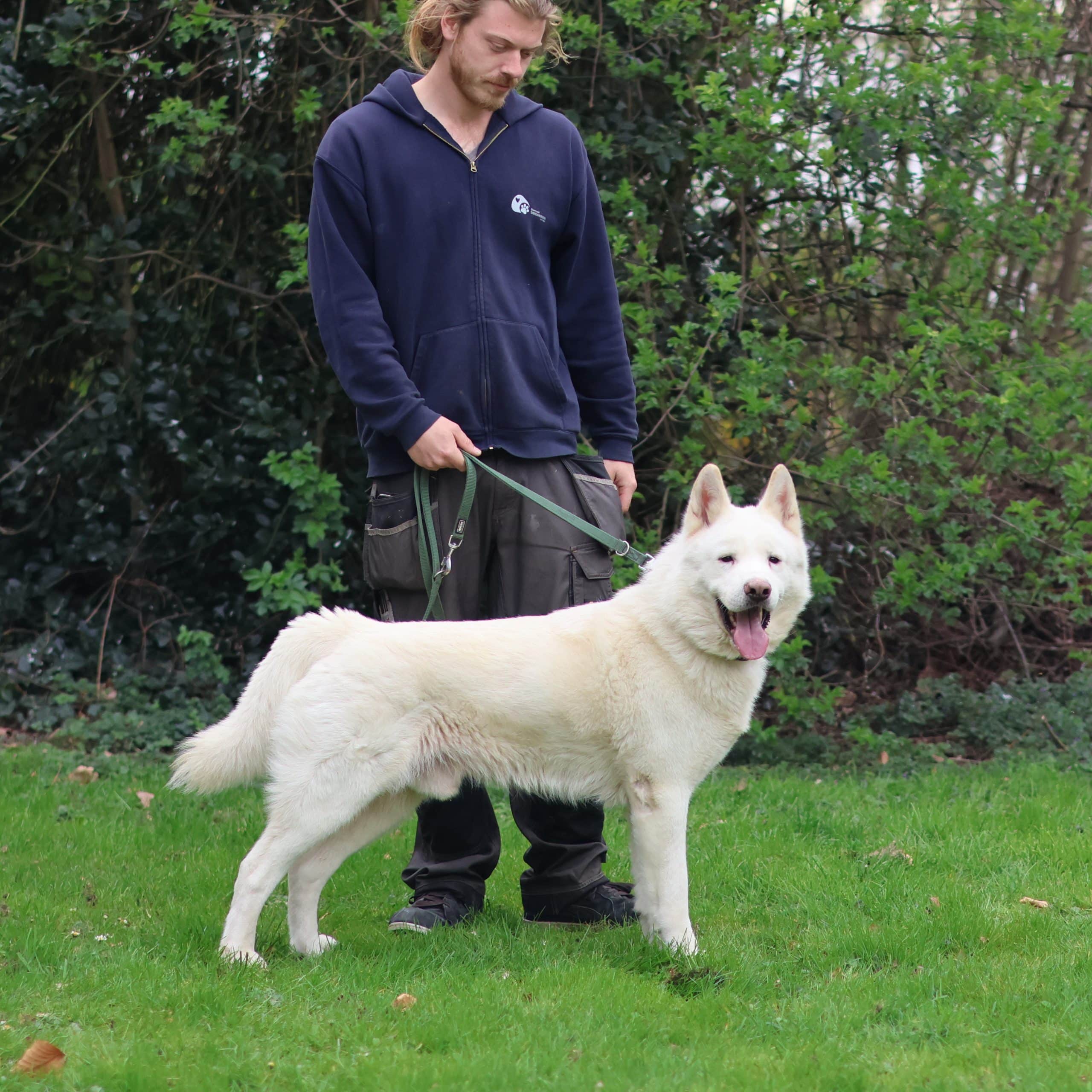 Hij reageert momenteel niet naar andere honden. Een match met een steriele teef is zeker niet uitgesloten. Hij leefde samen met een kat, dus mits sturing lijkt ons dat zeker ook mogelijk in de toekomst met een nieuwe kattenvriend.