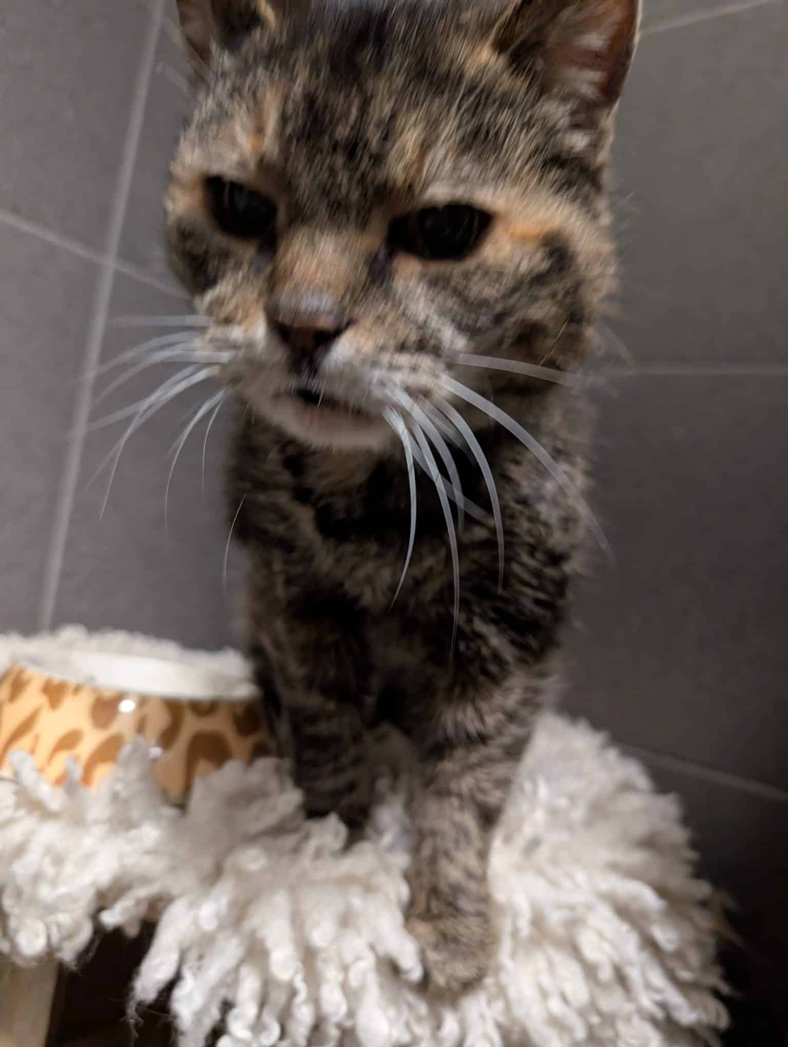 Zara is een zachtaardige poes die houdt van knuffels en aandacht, maar dan wel op haar eigen rustige tempo. In een nieuwe omgeving heeft ze wat tijd nodig om te wennen; ze zal niet meteen op je schoot komen liggen. Maar geef haar een fijne, veilige introductieperiode, en je zult ontdekken hoe ze je met liefde en zachte nabijheid overspoelt.